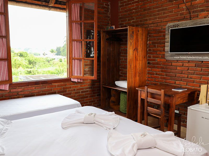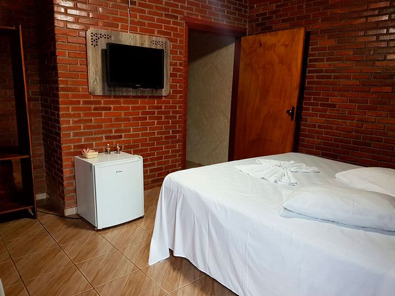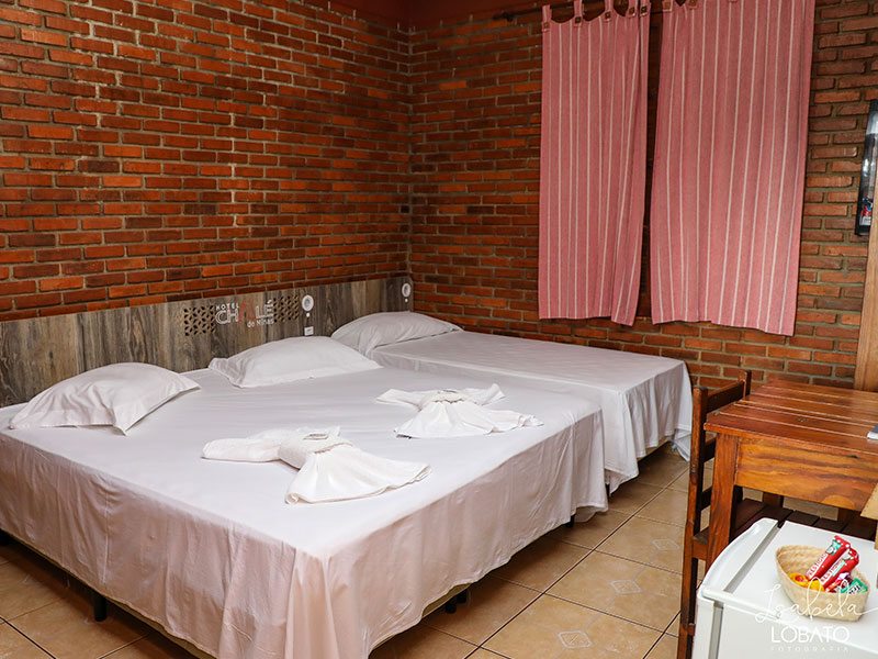 São privativos e aconchegantes, fogem da arquitetura tradicional de hotéis. Todos os Chalés são padronizados, possuem cama de casal, TV, minibar, mesa de apoio, roupeiro, ventilador de teto e banheiro privativo.